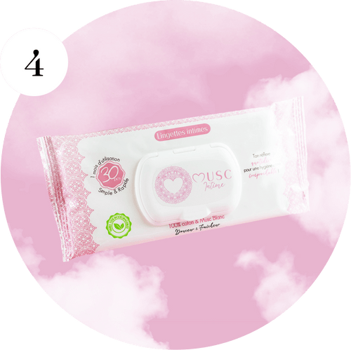 En un seul geste, la lingette intime nettoie en douceur et dépose un agréable parfum de musc blanc.